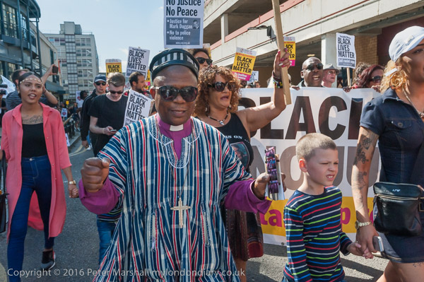 The main banner 'Black Lives Matter - No Justice, No Peace' form Stand Up to Racism