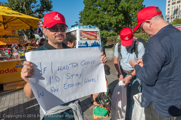 'The protesters tell her they are only meeting here and are going elsewhere, but she tells them they cannot have placards