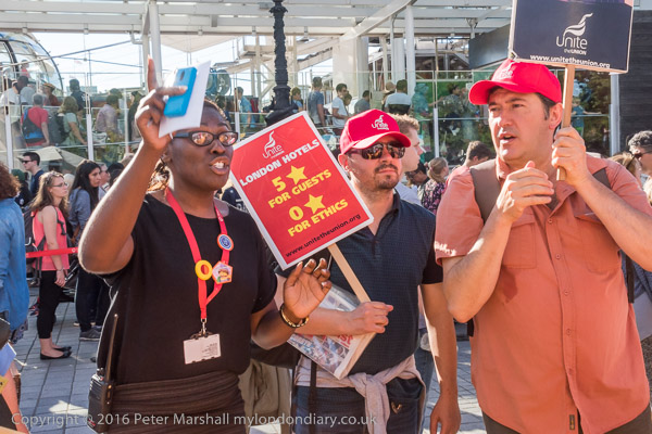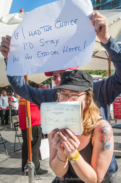 London Eye secuirty tell us they own this part of the public walkway and protests are not allowed'