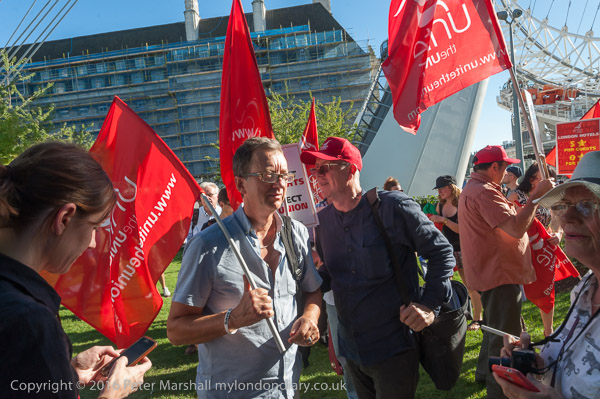 or banners, and tells me I cannot take photographs. The campaigners move on to Jubilee Gardens, which