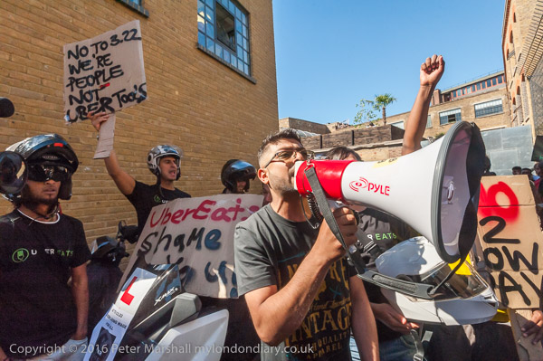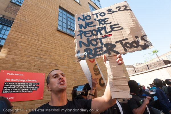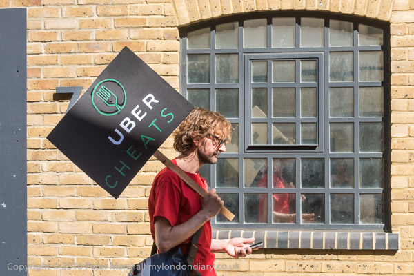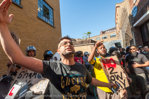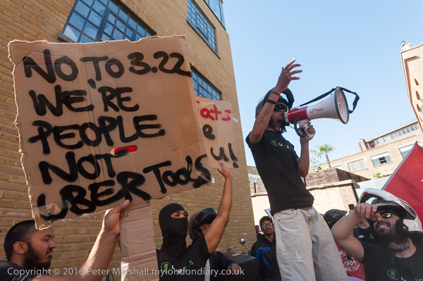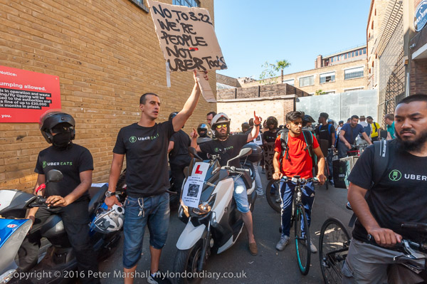 Security men outside the Uber offices told me they were not coming, but on my phone I watched a brief video clip of them leaving Aldgate