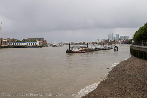 The path goes back to the river at the east of Chambers Wharf - now a large building site for the Thames Tideway super-sewer