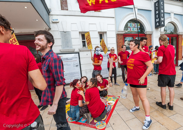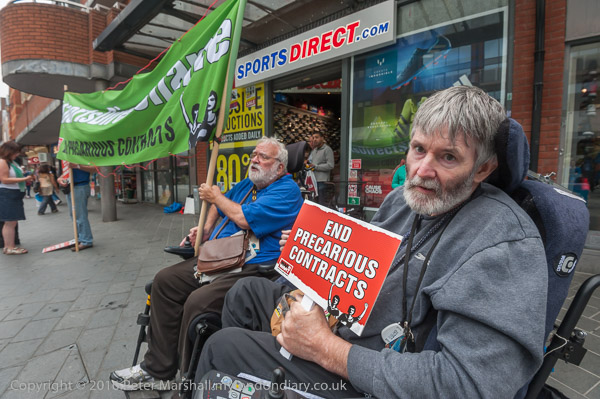 War on Want protested outside Sports Direct in Stoke Newington and Harrow as part of a countrywide 'Sports Direct Day of Shame' against their use of insecure zero hour contracts which mean workers can be fired at will and make workplace abuse of human dignity and workers rights hard to challenge.