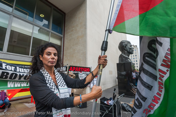 The protest took place next to the bust of Nelson Mandela, a firm supporter