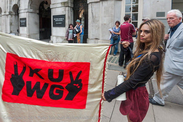 Unemployed Workers Group protest outside the BMAKilburn Unemployed Workers Group protested against the many different cuts and attacks on claimants, particularly those with disabilities outside the BMA HQ in Tavistock Square.