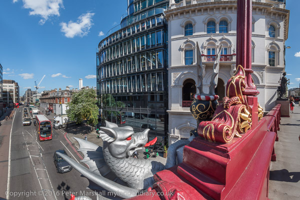 I was on my way to visit a friend and had some time to spare, so got of the bus to take some mainly panoramic images around Holborn Viaduct, where I'd see on a previous journey past the the building work to the southwest of the bridge. I'd a couple of pictures while the demolition was taking place some time ago.