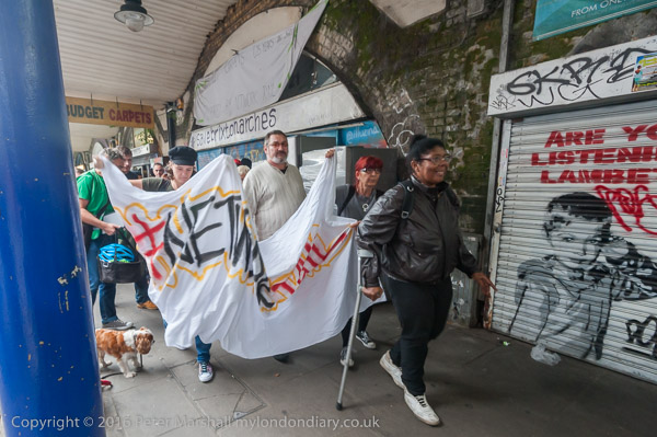 The posters, banners and speeches were about the plans by Lambeth Council