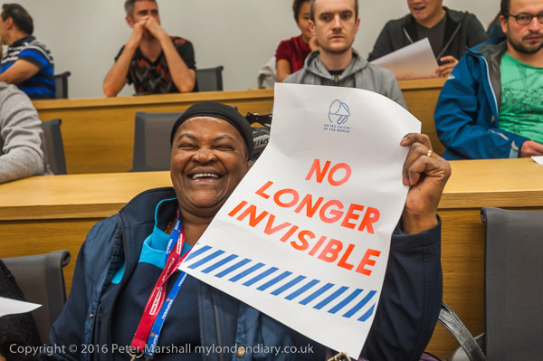 Cleaners at the LSE begin their campaign for parity of treatment with other workers at the university with a meeting led by their union, the United Voices of the World, as a part of the LSE's 3-day 'Resist' Festival.