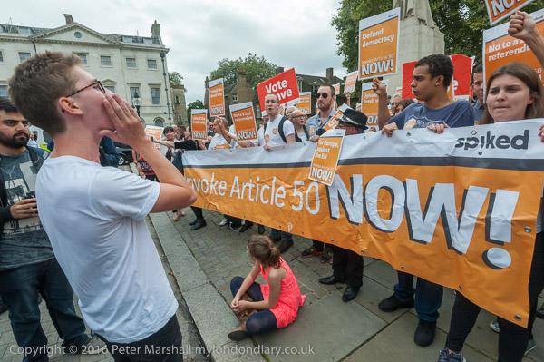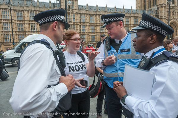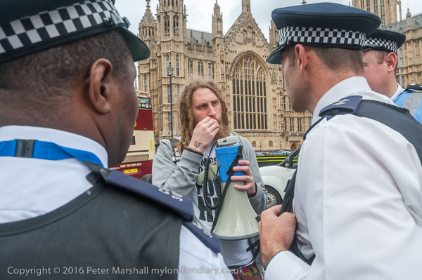 POlice tell one of the organisers they are not allowed to use a megaphone here