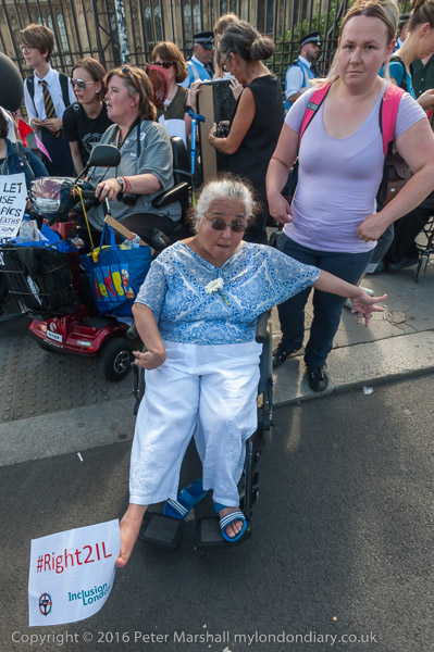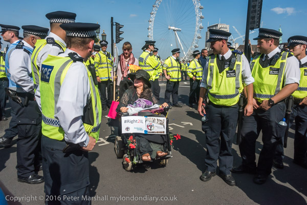 One carer who refused to move away from the disabled person he was looking after was arrested and taken to a police van