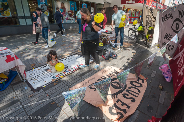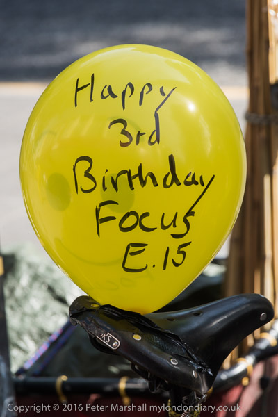 FOcus E15 were in party mood, with bunting and balloons at their weekly street stall
