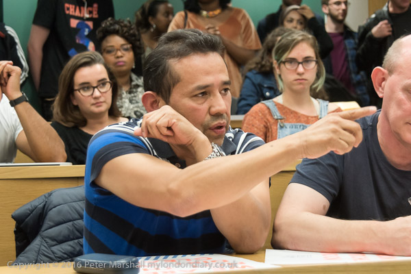 next to him was one of the cleaners who had lost his job at SOAS because of his union activites and was now at the LSE