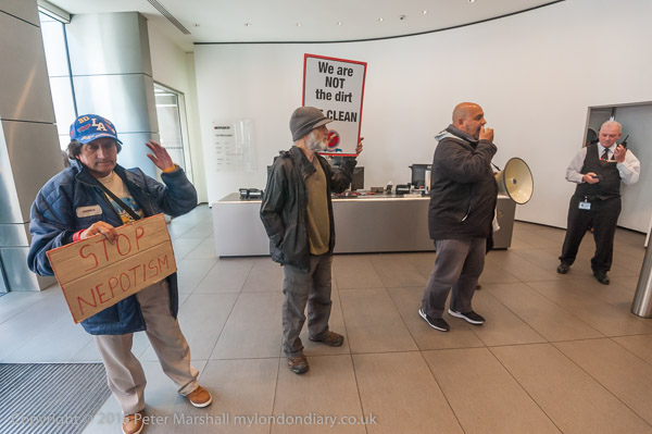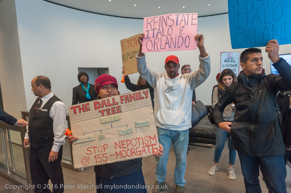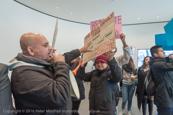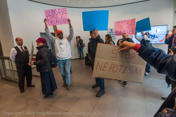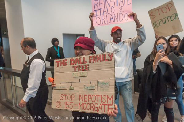 As well as calling for reinstatement of sacked worked they complain about nepotism