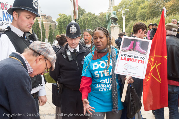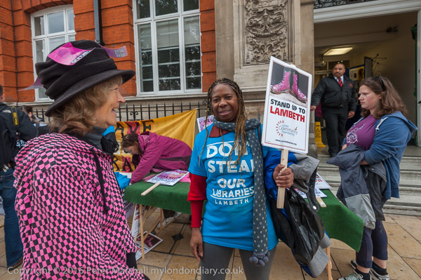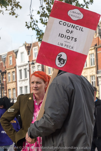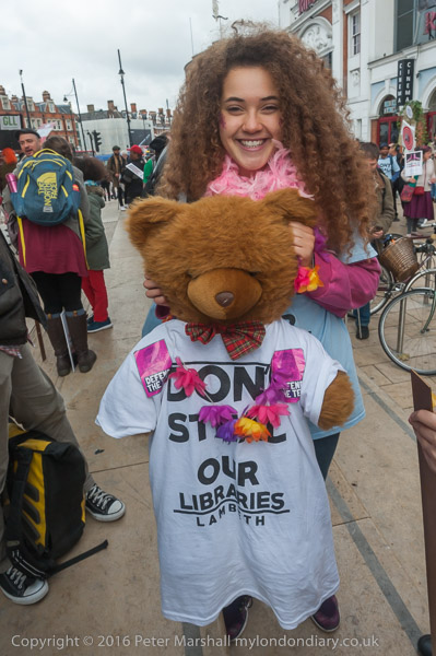 And a bear with a t-shirt 'Don't Steal our Libraries - Lambeth'