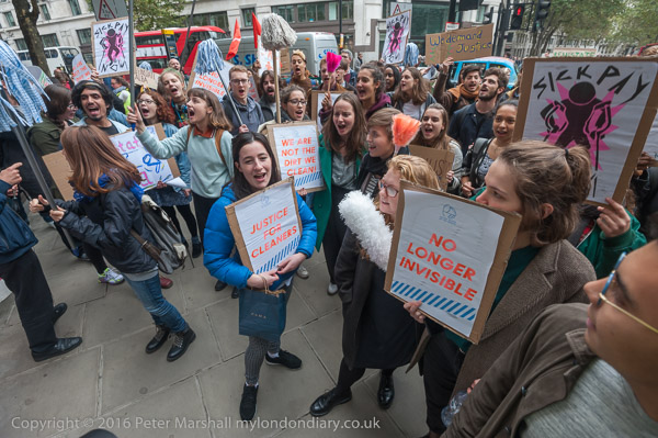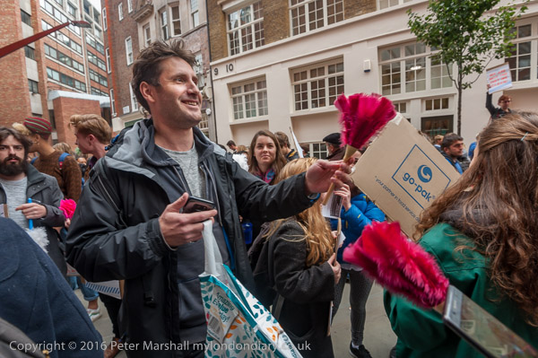 Petros Elia says the protesters will march shortly from their meeting place outside the LSE student union building