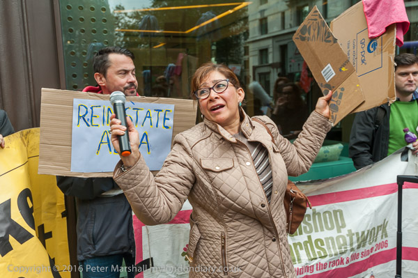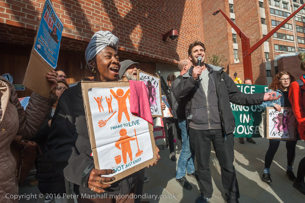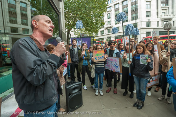 Sandy Nicholl of SOAS Unison speaks in support of Alba and the cleaners' claim for equal treatment
