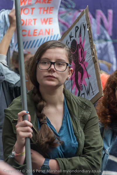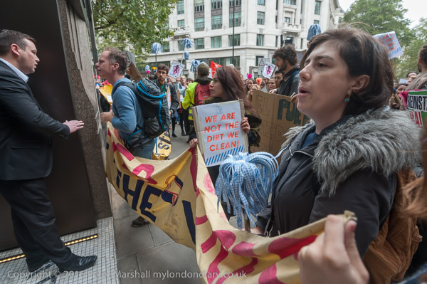 some of the protesters held mops to show solidarity with the cleaners
