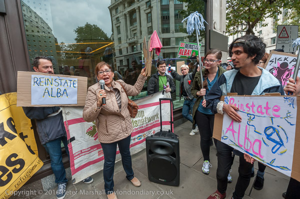 Alba comes to speak to the protest