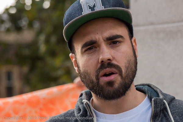 Poet Luke Miller of potentialforchange.com reads a poem about the refugees at Calais