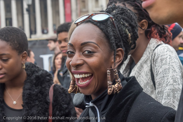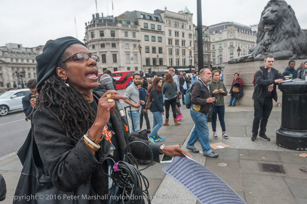 Marcia Rigg tells people what is happening at the event and why they are being held up