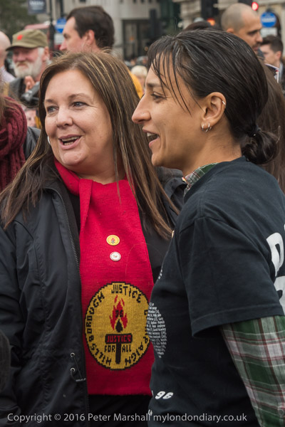 Becky Shah, whose mother died at Hillsborough with survivor Gillian Edwards at left
