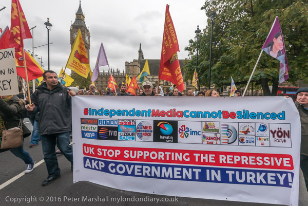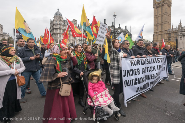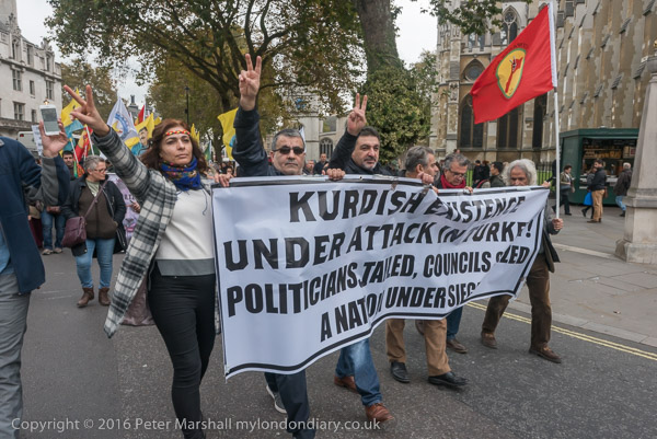 Kurds marching against Edrogan's arrest of MPs sit down briefly on
