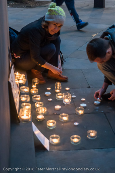 People prepare for the vigil calling for Justice for Fazel Chegeni,