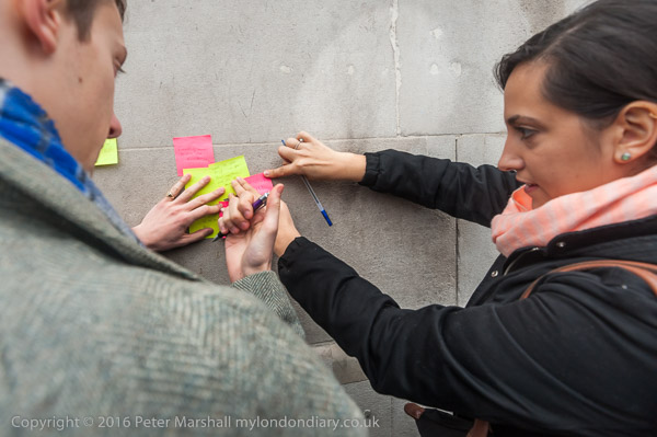After the speeches people write 'Post-Its' with their thoughts and