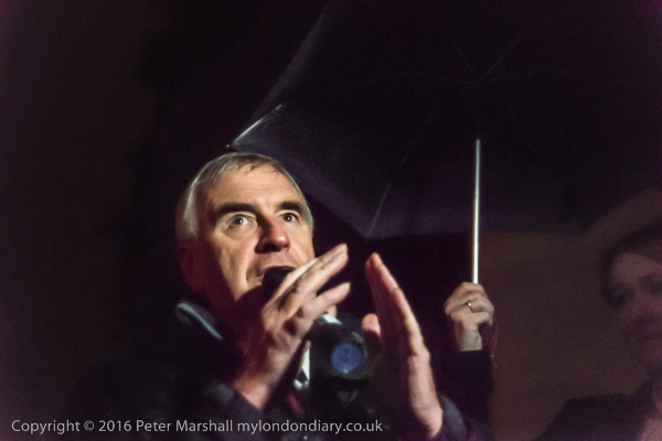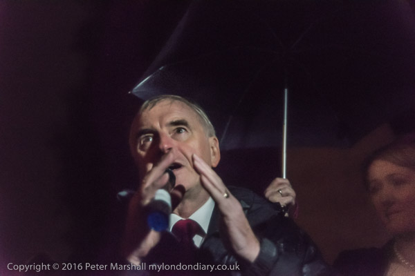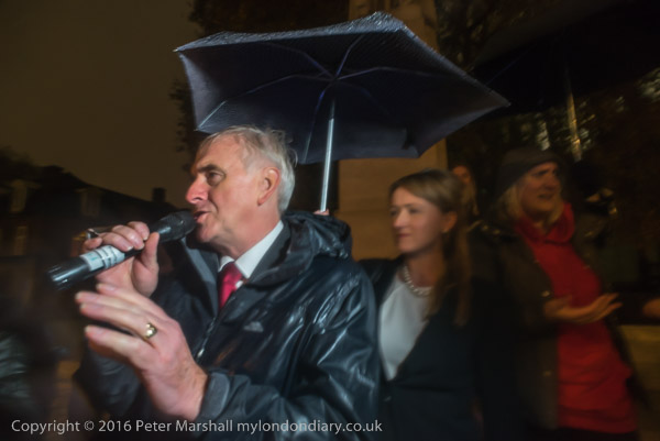 John McDonnell MP with Rebecca Long-Bailey holding an umbrella