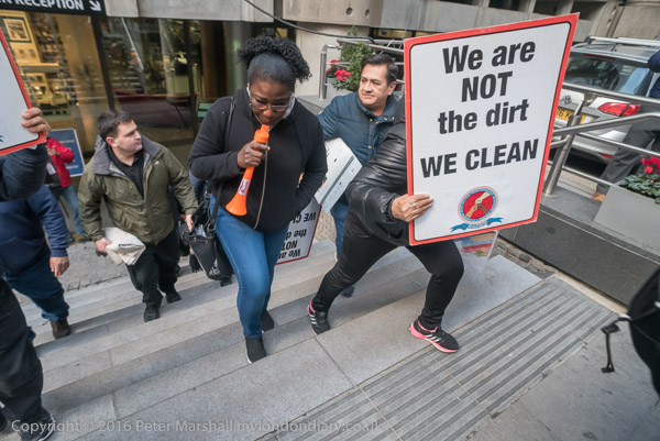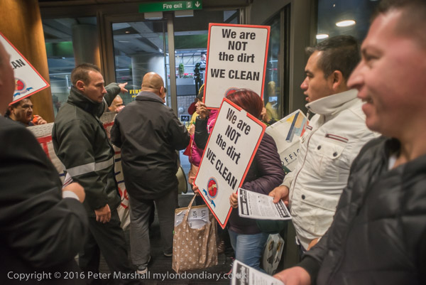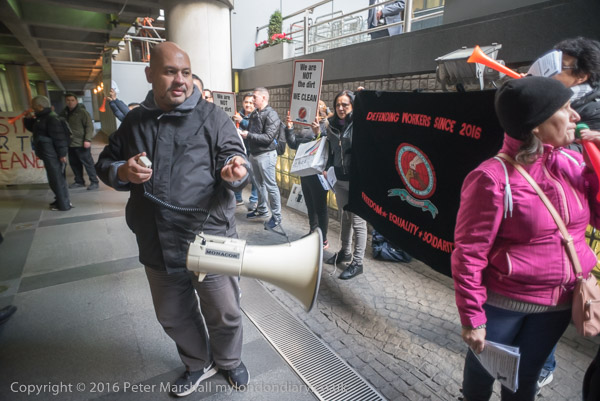 and the cleaners shout for justice and an end to racist management