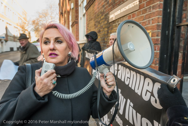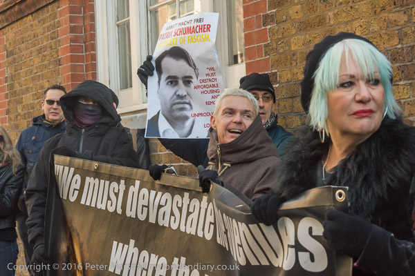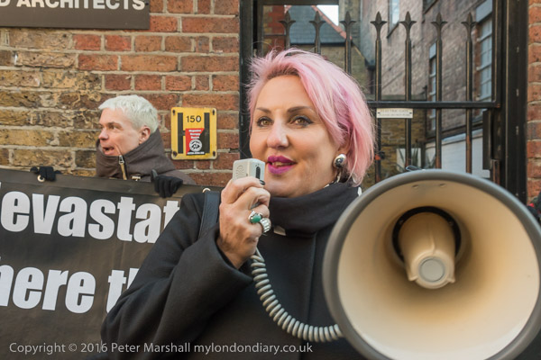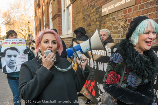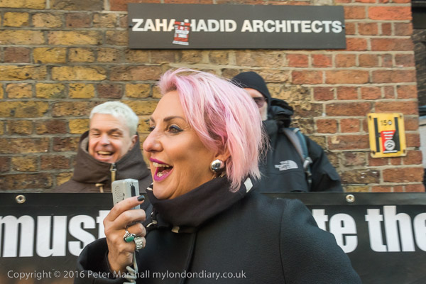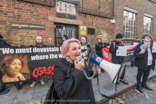 Zaha Hadid Archtects sign with a Class War Womens Death Brigade sticker