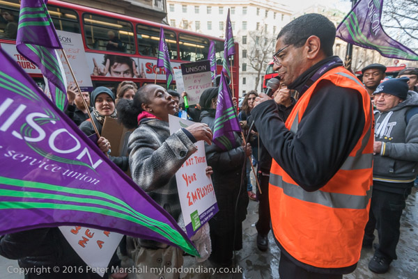 Petros Elia of the UVW had come along to support the Unison cleaners