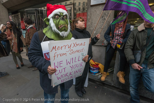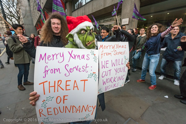 A cleaner plays Servest as a Christmas Grinch, threatening redundancies