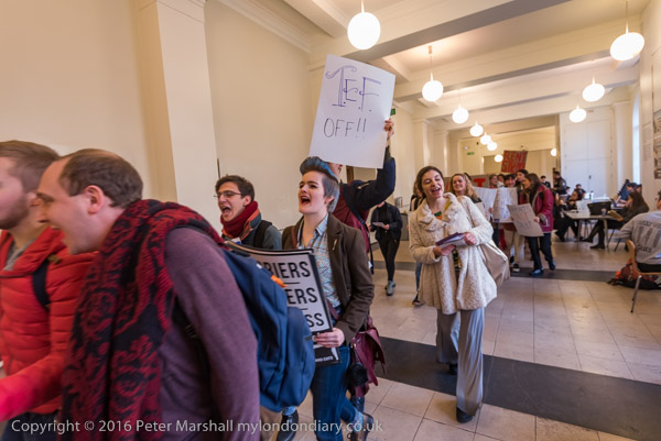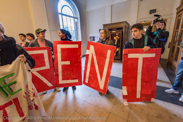To make a lot of noise near the management offices - watched by Bentham