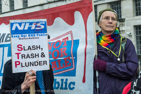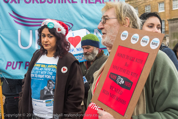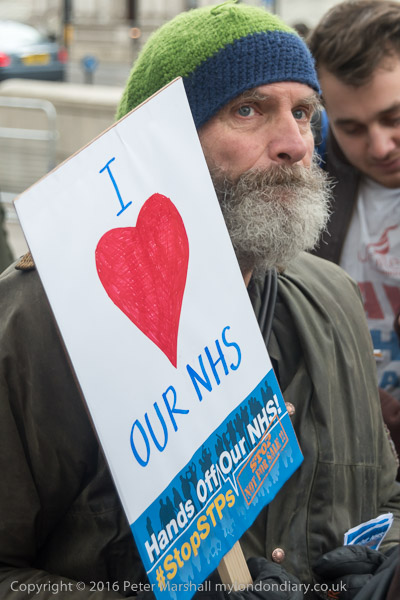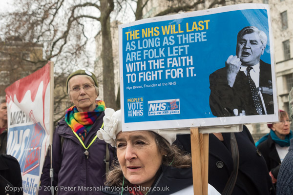 Several people had placards or t-shirts with Nye Bevan's quote "The