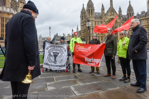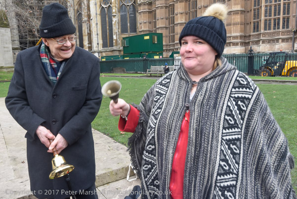 Rev Paul Nicolson of Taxpayers Against Poverty and Paula Peters of DPAC ring alarm bells