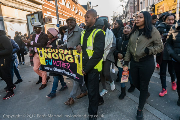 Another protest march comes up Rye Lane, with Oh! Mother protesting