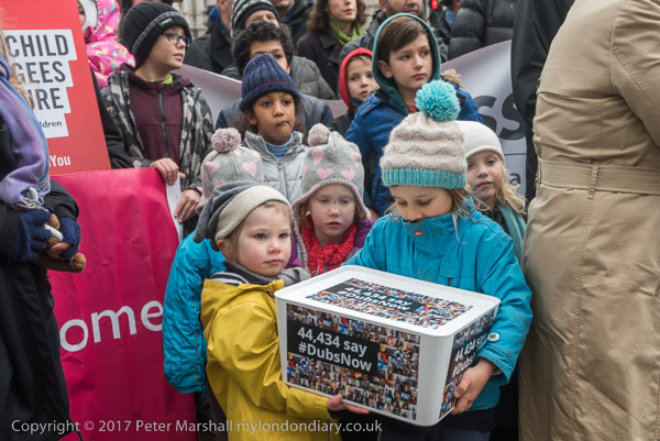 Speakers from 4 London Labour councils said they had informed the government when the amendment was passed that they could cope with more children but their offers had not been taken up. A speaker from Greenwich COuncil said they had offered places for 23 children and had heard nothing until the morning of this protest when one place had been taken up.