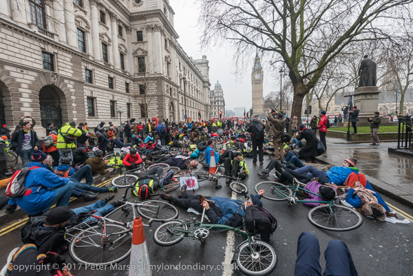 Cyclists die-in in remembrance of the 3 London cyclists and 2 pedestrians killed this week