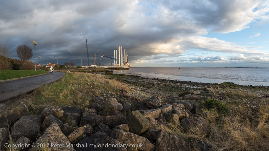 The riverside path now stops short, and has been upgraded from a path to a promenade and only around half the previous length, just over a mile. We were lucky to get there in late afternoon when the weather was fairly dramatic. We started by walking down beside the slipway, then went up to the locked gate across the path by Alexandra Dock, then returned, carrying on past the deep and across the footbridge there into the Old Town, where we went to the Minerva to enjoy a drink and an early dinner.