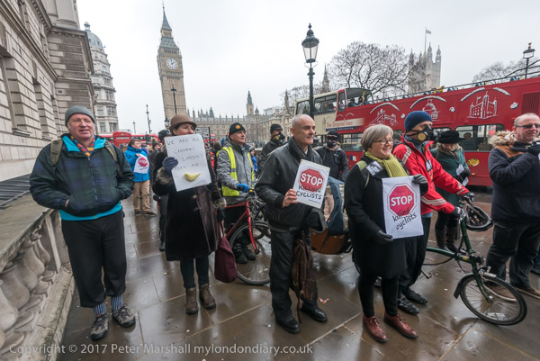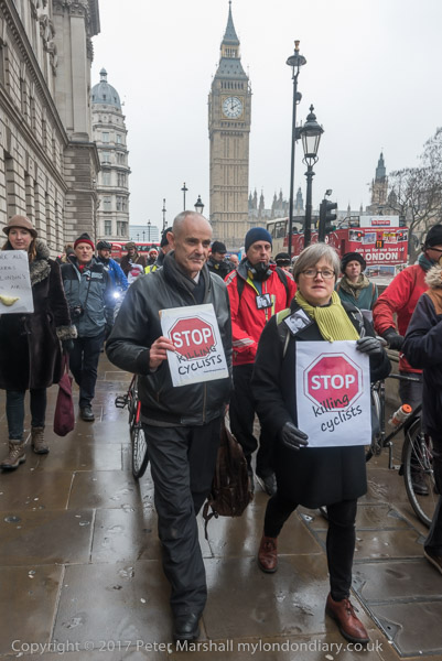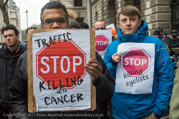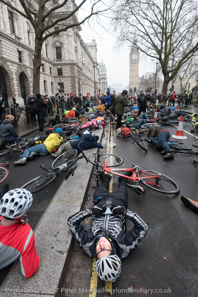 Cyclists die-in in memory of Anita Szucs, Karla Roman and Ben Wales,and