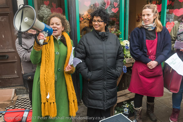 Shopkeepers Omar form Nest Cafe and Heidi from Disy Chain Florists are wassailed