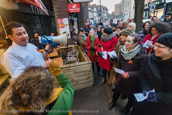 The Cricklewood Community Chori sings next to Mezzoroma