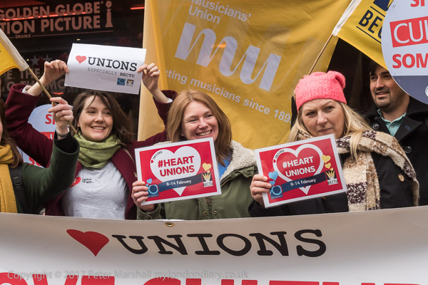 A #Heart Unions poster from Prospect and BECTU, and Candy Udwin with
