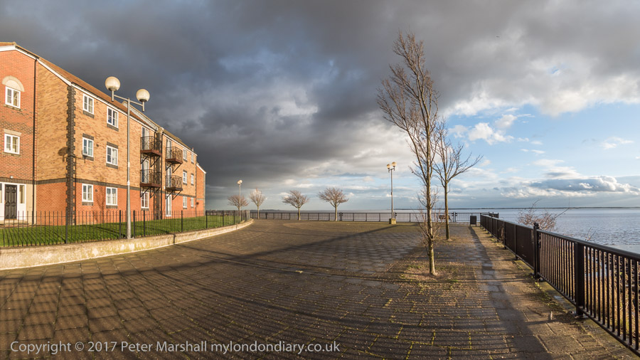 Low sunlight and a dark grey sky, though it was perhaps a little more dramatic than this. Although panoramic in format this has less than half the angle of view of the other 16:9 format images here