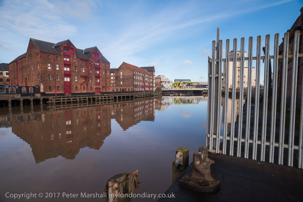 Pease warehouses - now flats - and Drypool Bridge and the fence that