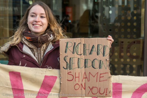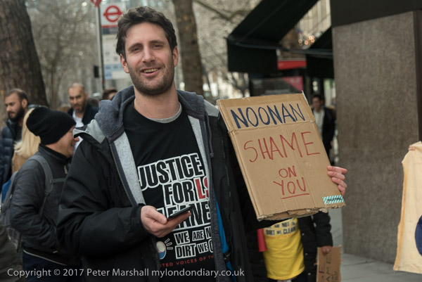 UVW General Secretary Petros Elia holds a poster 'Noonan Shame on