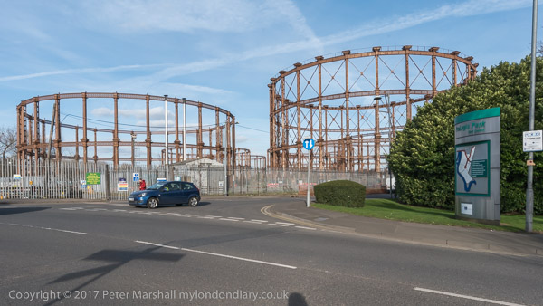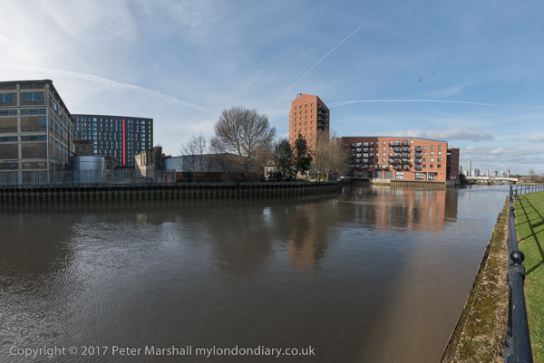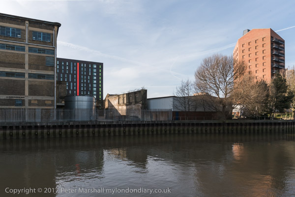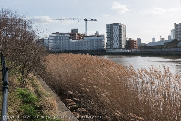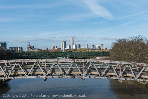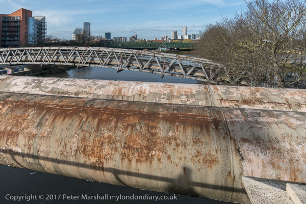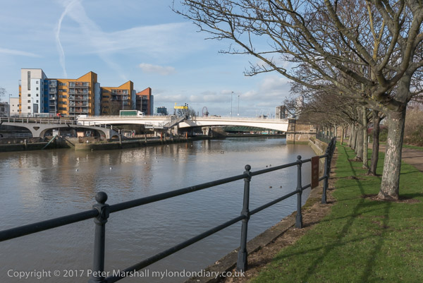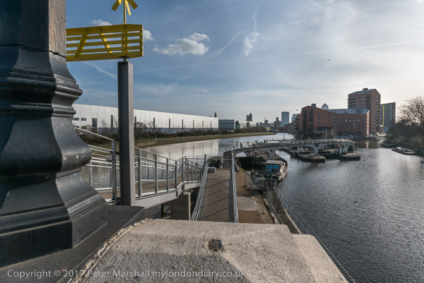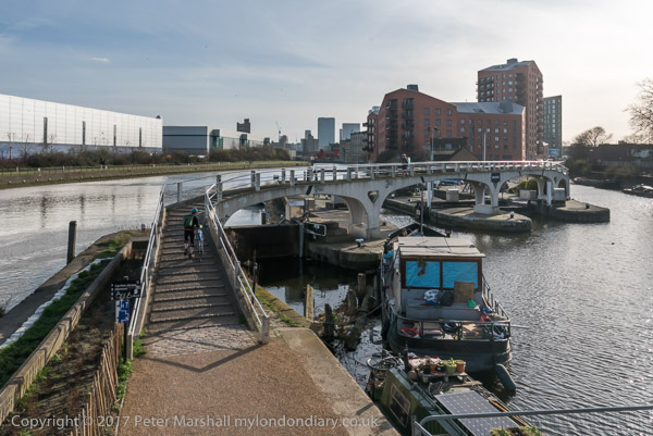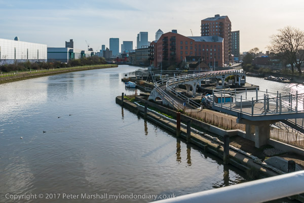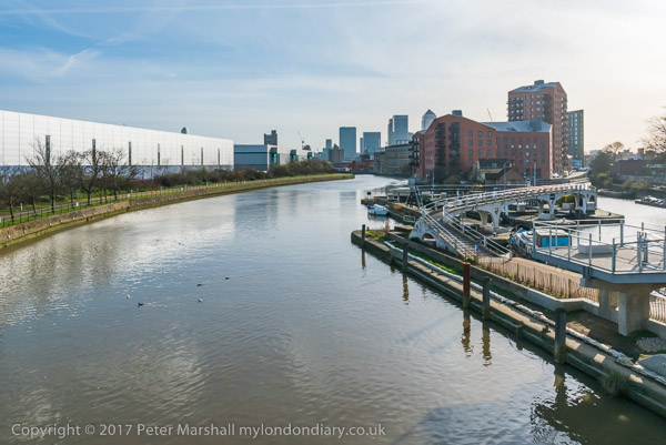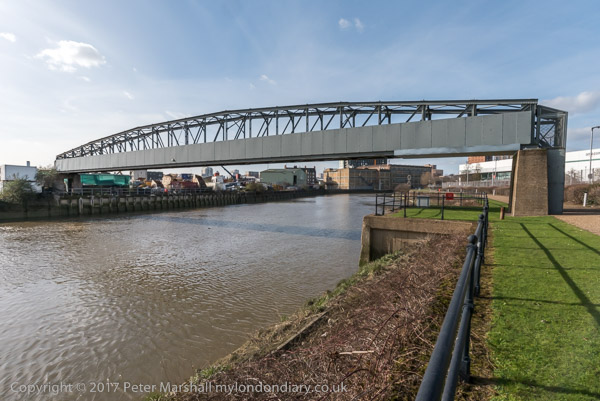 THe view north from Twelvetrees Crescent bridge, built in 1872 for