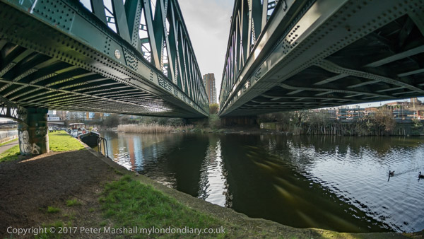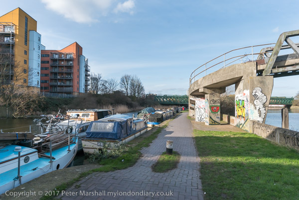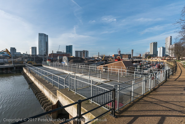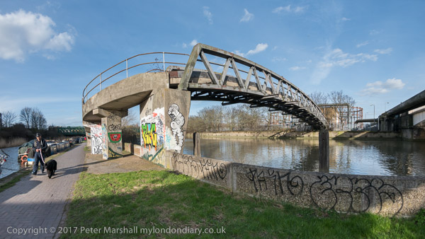 North from Twelvetrees Crescent a private bridge leads into the gasworks