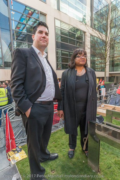 Richard Burgon and Diane Abbot wait to speak